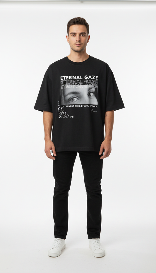 Eternal Gaze Personalized Oversized Tee | Couple's Custom Eye Print Shirt